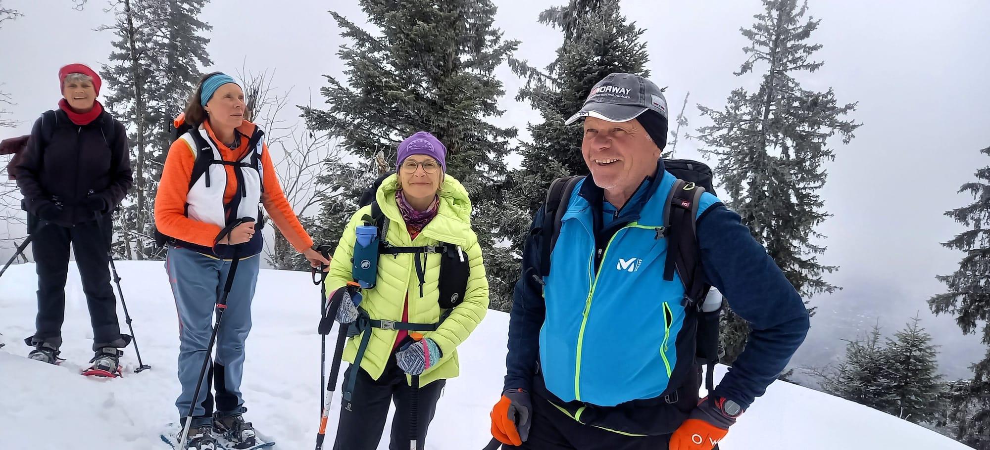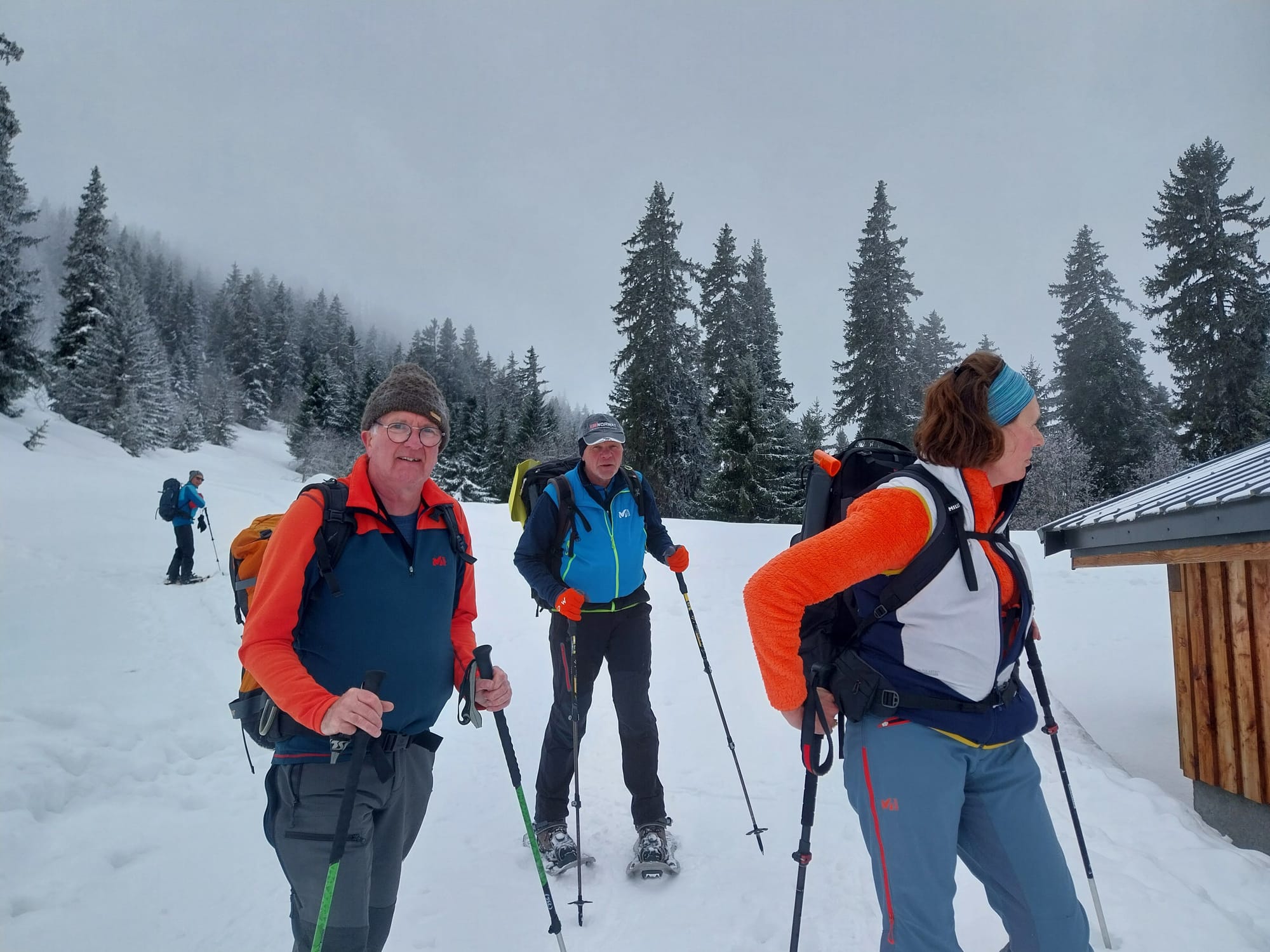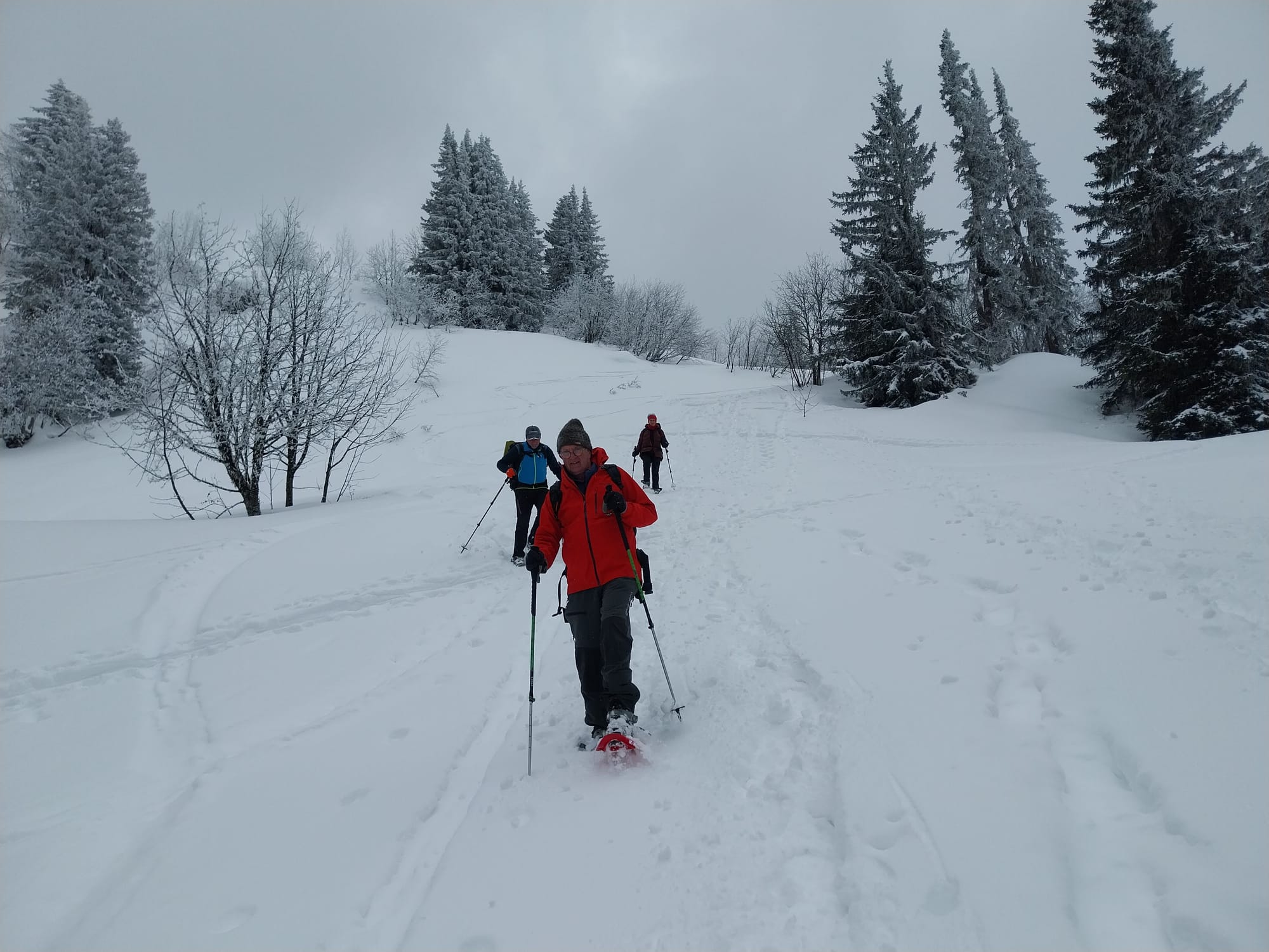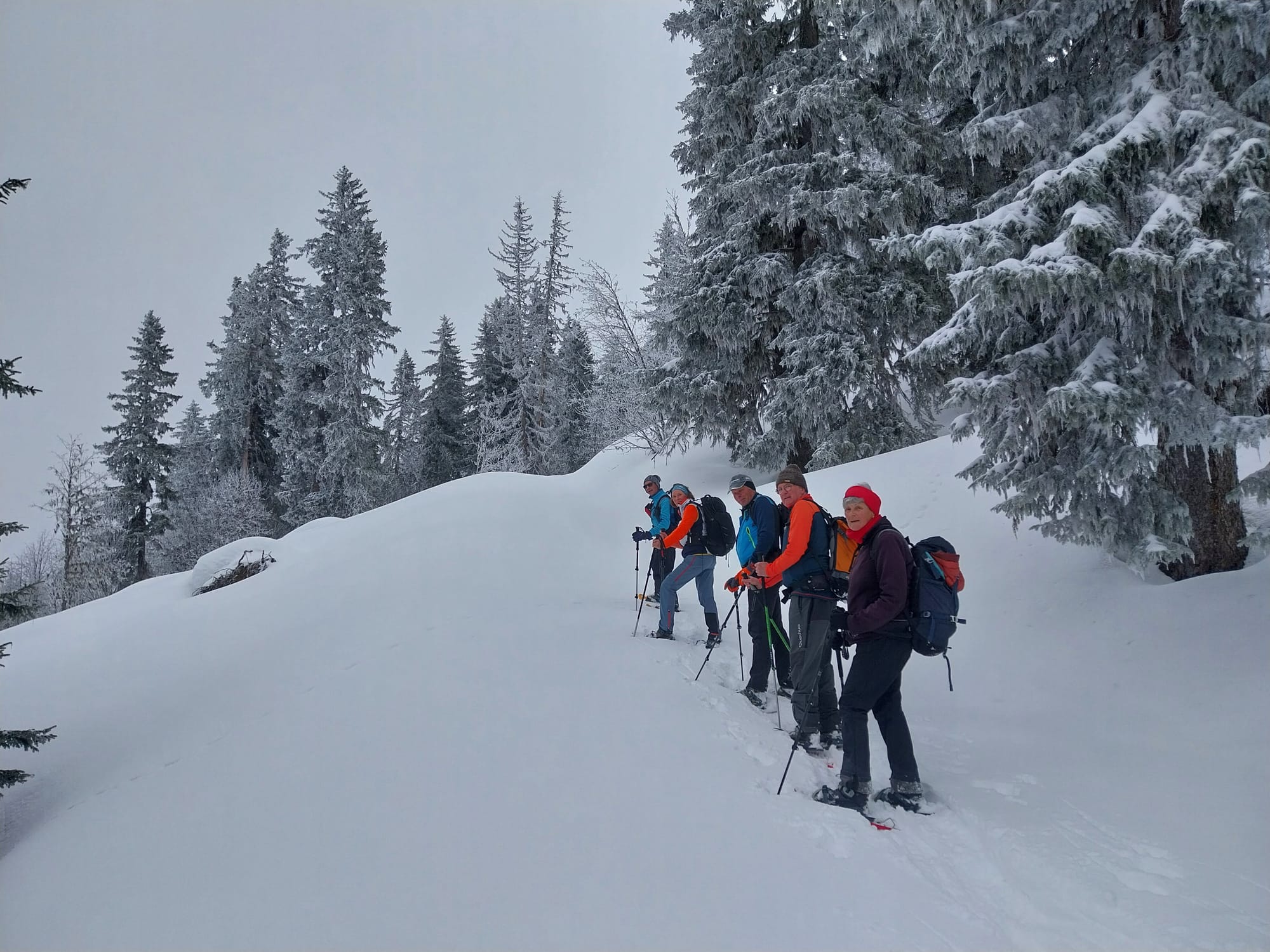 Pour cette dernière sortie raquettes de la saison, la neige était abondante et les participants ont parfois "fait la trace". Ambiance alpine hivernale et joviale.