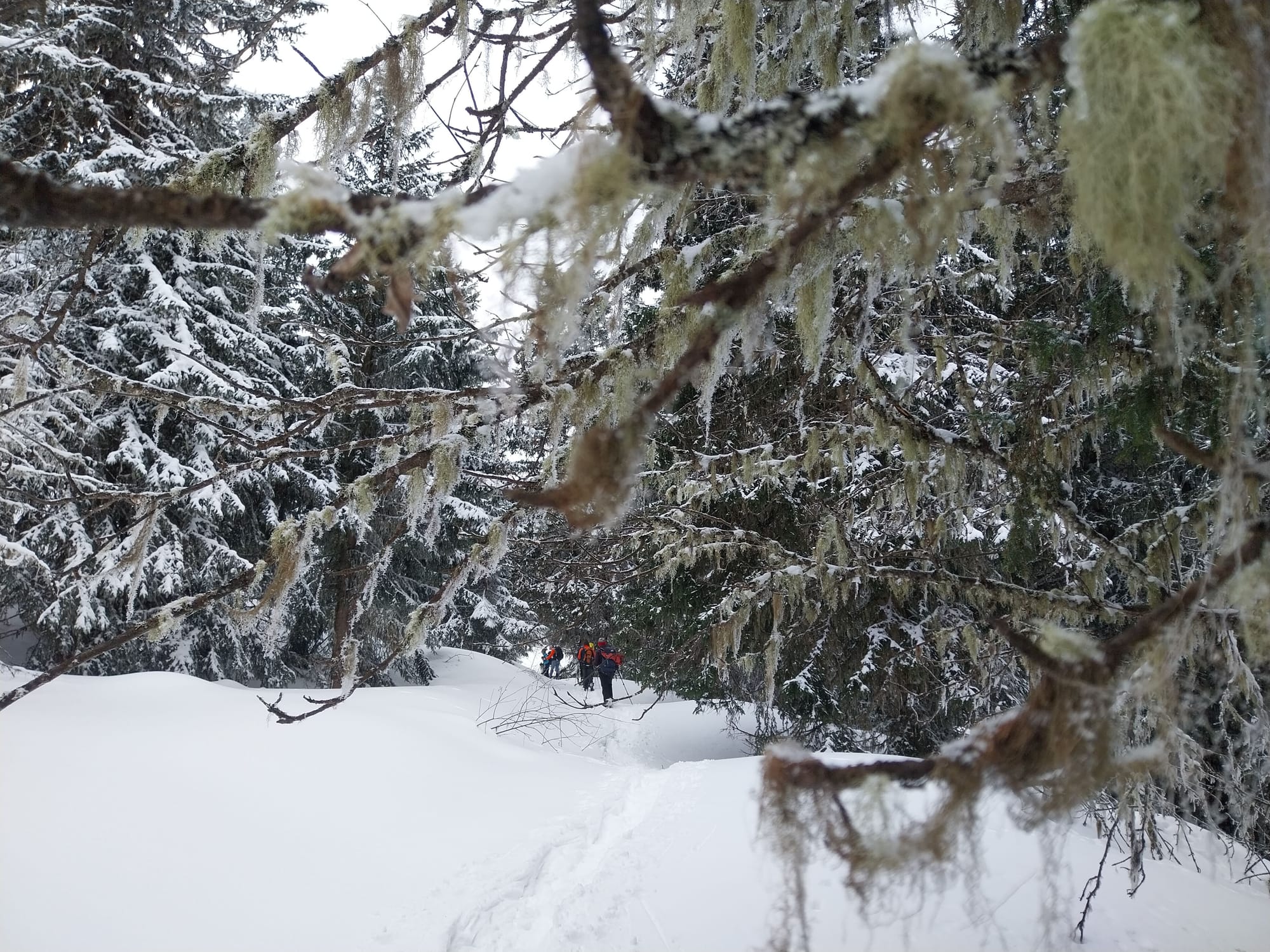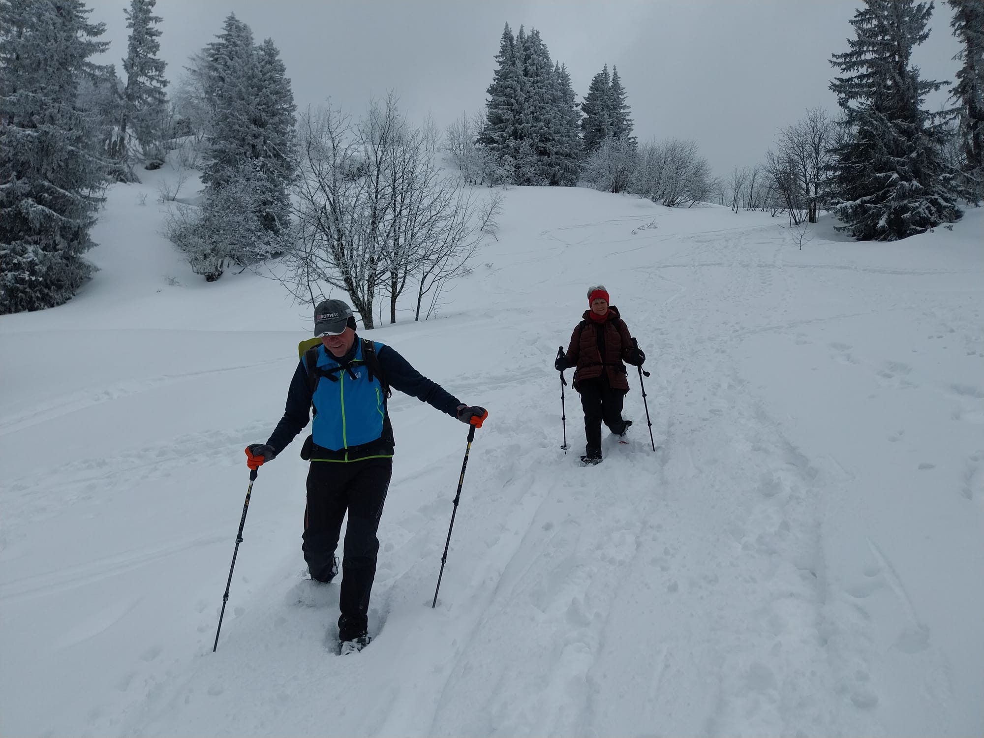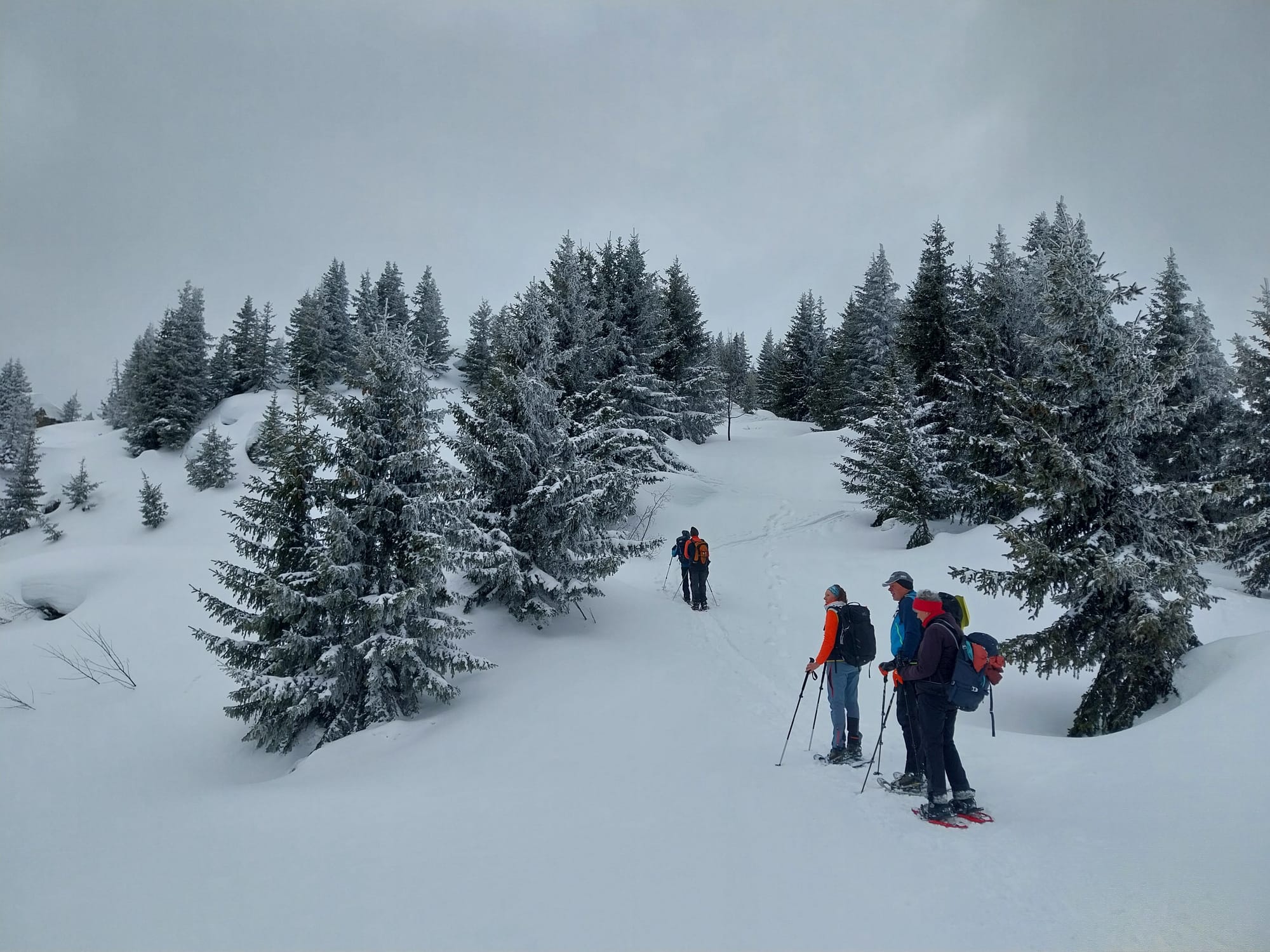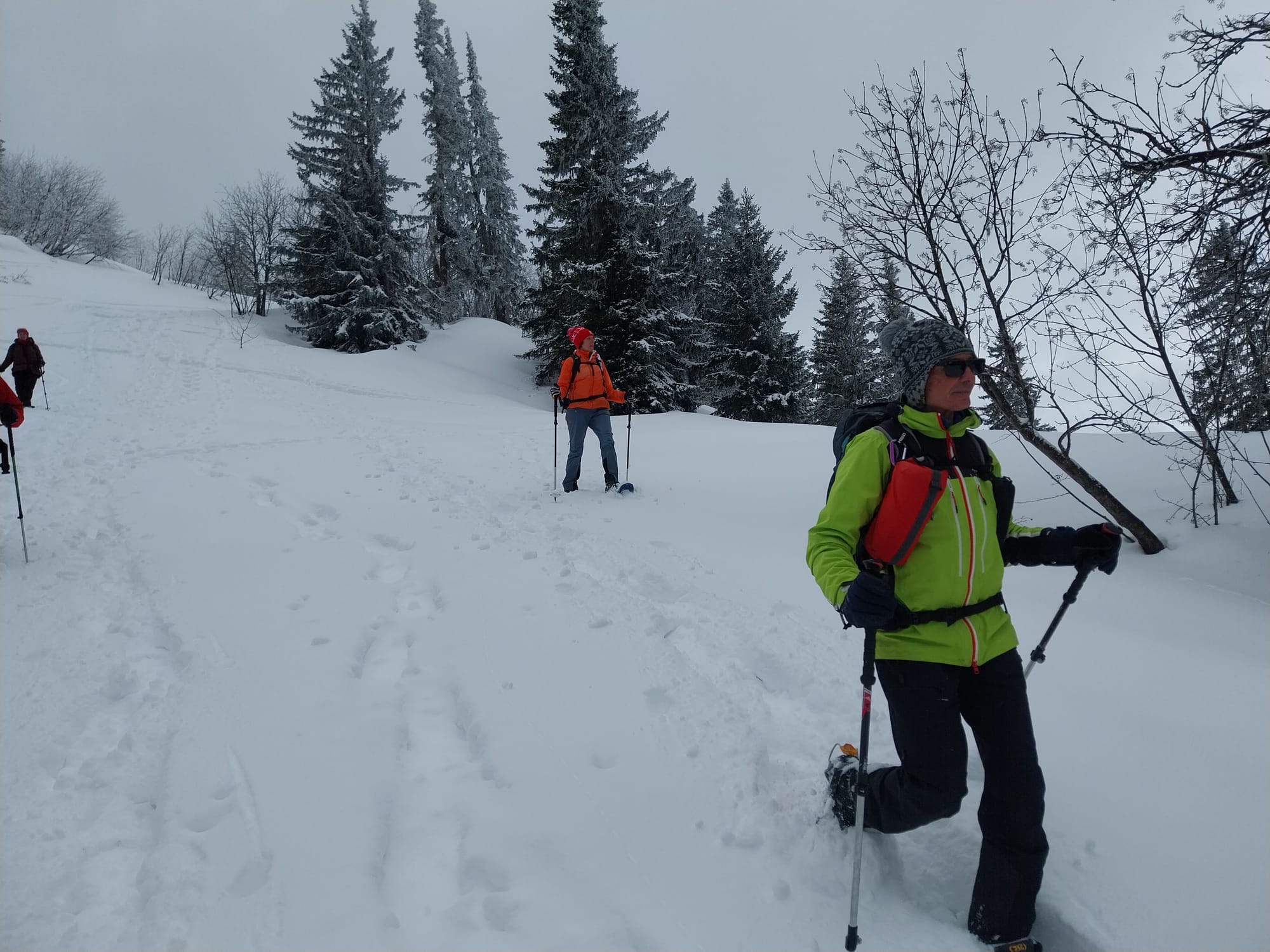 Pour cette dernière sortie raquettes de la saison, la neige était abondante et les participants ont parfois "fait la trace". Ambiance alpine hivernale et joviale.